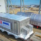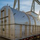 Screened Froth Pumpboxes Location: Alberta Width: 14-17 feet Length: 16-35 feet Height: 28 feet Diameter: 12 feet Weight: 100,000 - 200,000 lbs Volume: 58-146 cubic meters Supplied 2 pumpboxes including stuctural steel supports. Boxes were hydrotested on site before shipping.